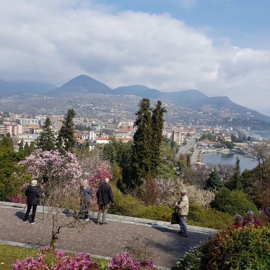 unser Hotel mit Blick auf den Lago Maggiore, die nächsten aus dem riesigen Garten der Villa Toronto