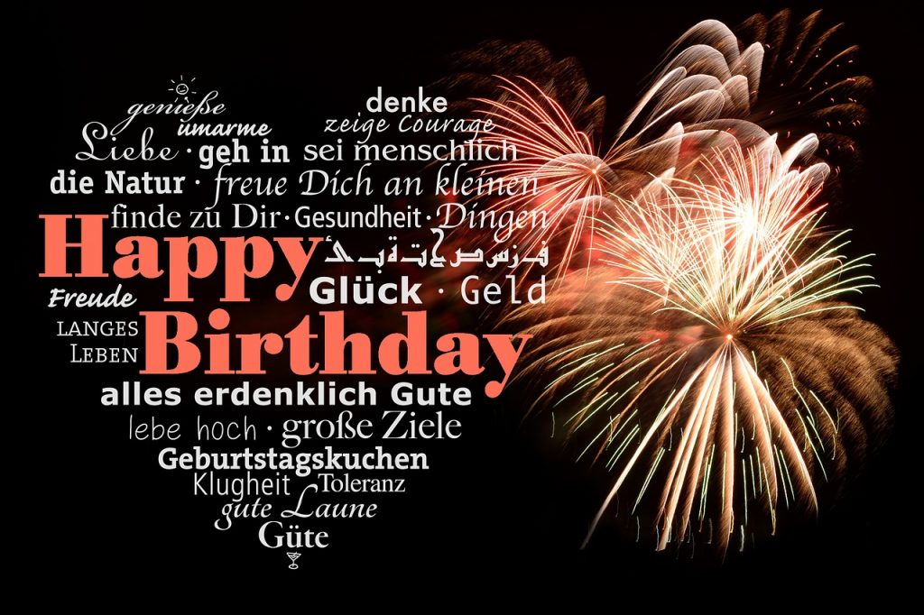 "Mögest du an deinem Geburtstag von Freude, Liebe und Glück umgeben sein. Alles Gute und viel Gesundheit!"