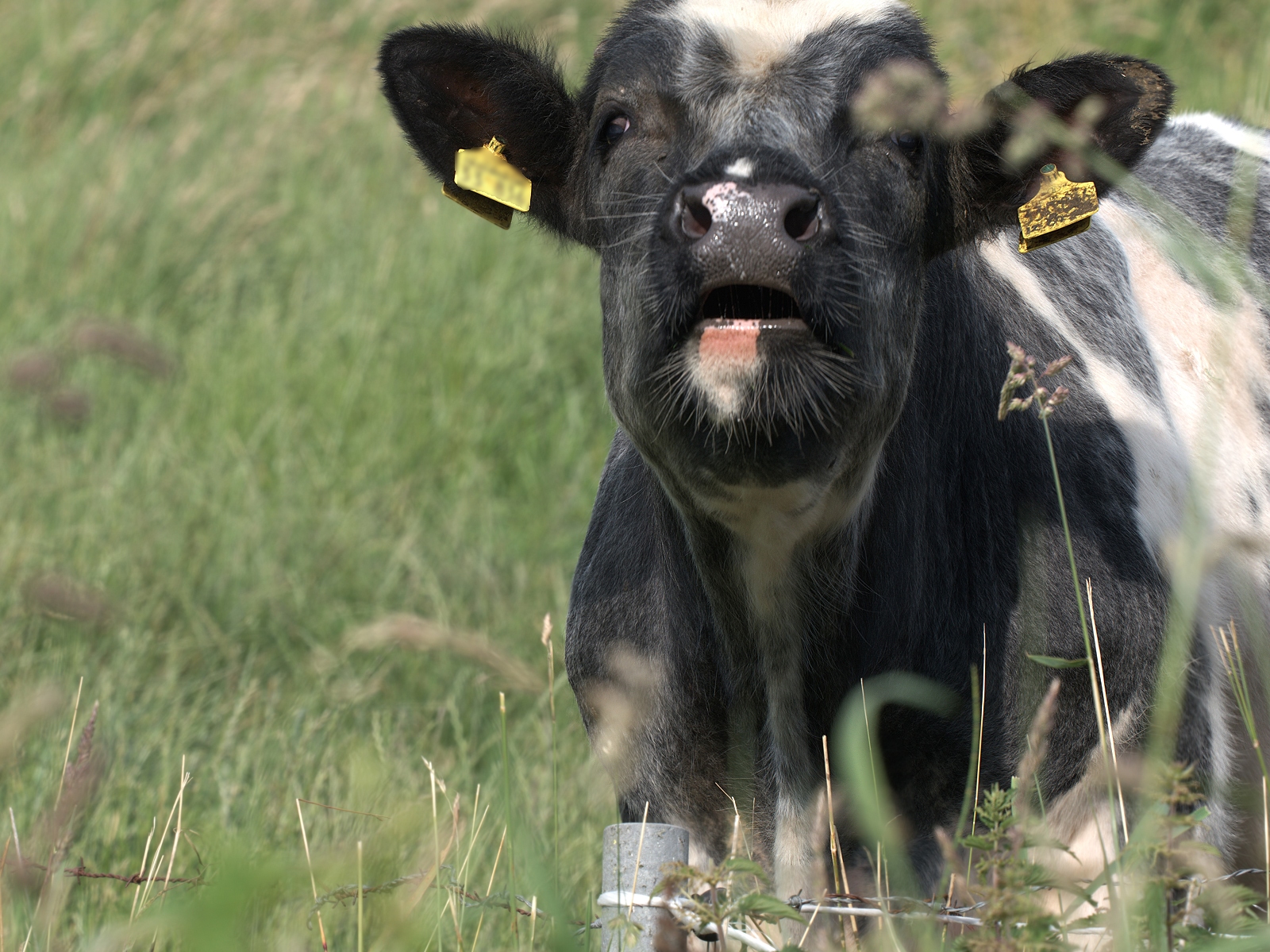 Die Jungrinder dürfen noch auf der Weide grasen und begrüßen mich immer.