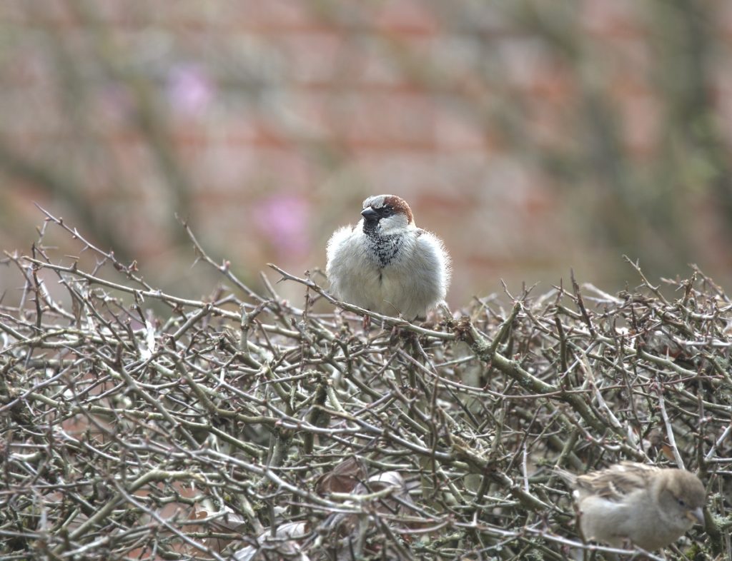 Bei genauer Betrachtung sieht man, wie schön der simple Spatz im Brutkleid gefärbt ist.