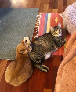 Heute früh, als ich kurz aufwachte, lagen Amber und Jolie auf mir. Amber auf meiner Brust und Jolie auf meinen Oberschenkeln. Ich schlief wieder ein und wurde von einem Geräusch von draußen geweckt. Die beiden Katzen lagen noch immer wie eine Decke auf mir. Ich wollte sie nicht stören und blieb noch mindestens eine Dreiviertelstunde so liegen, bis ich aufstehen musste. Es fühlte sich wunderbar warm und beschützt an mit den beiden Katzen an meiner Seite.