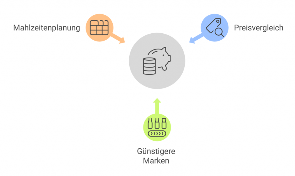 - Günstigere Marken wählen: Markenprodukte sind nicht immer besser – häufig ist die Qualität der Eigenmarken ähnlich, der Preis jedoch deutlich niedriger.