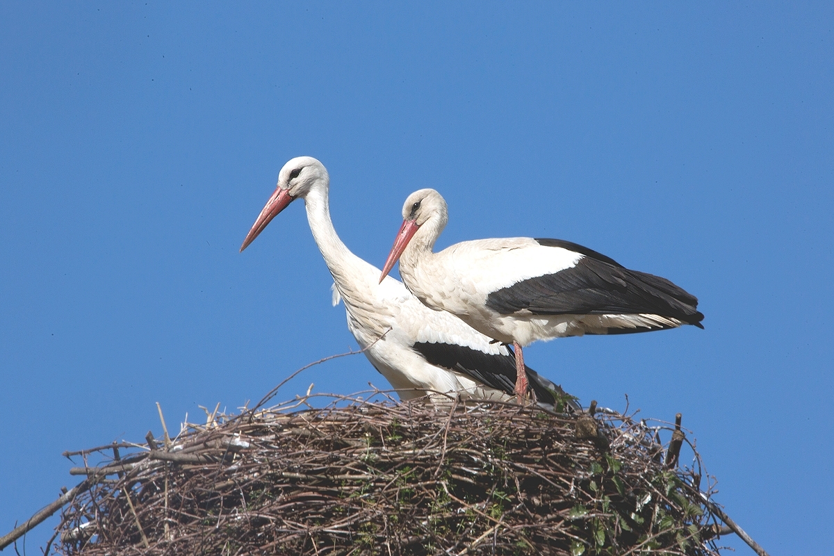 Das Paar hat wieder das Dachschlupfloch im Nachbarhaus als Nistplatz auserkoren.