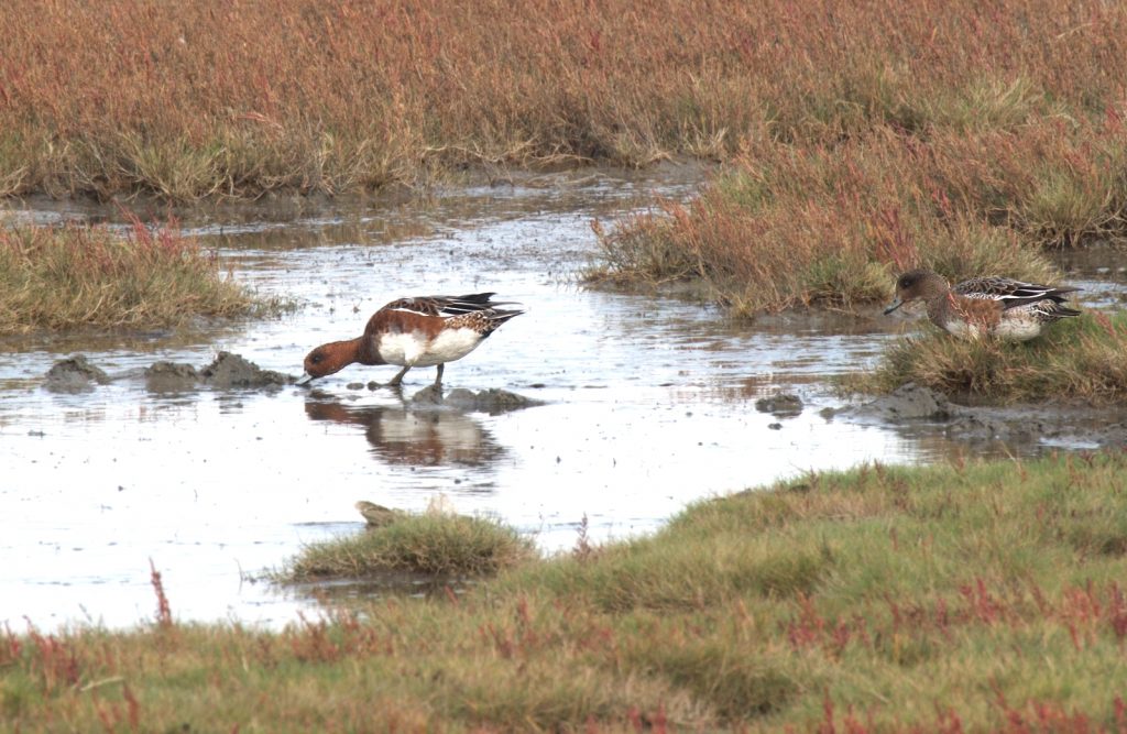 Neulich hatte ich dieses Paar erwischt. Obwohl die Entfernung beträchtlich war, kann man die Gefiederfärbung erkennen.