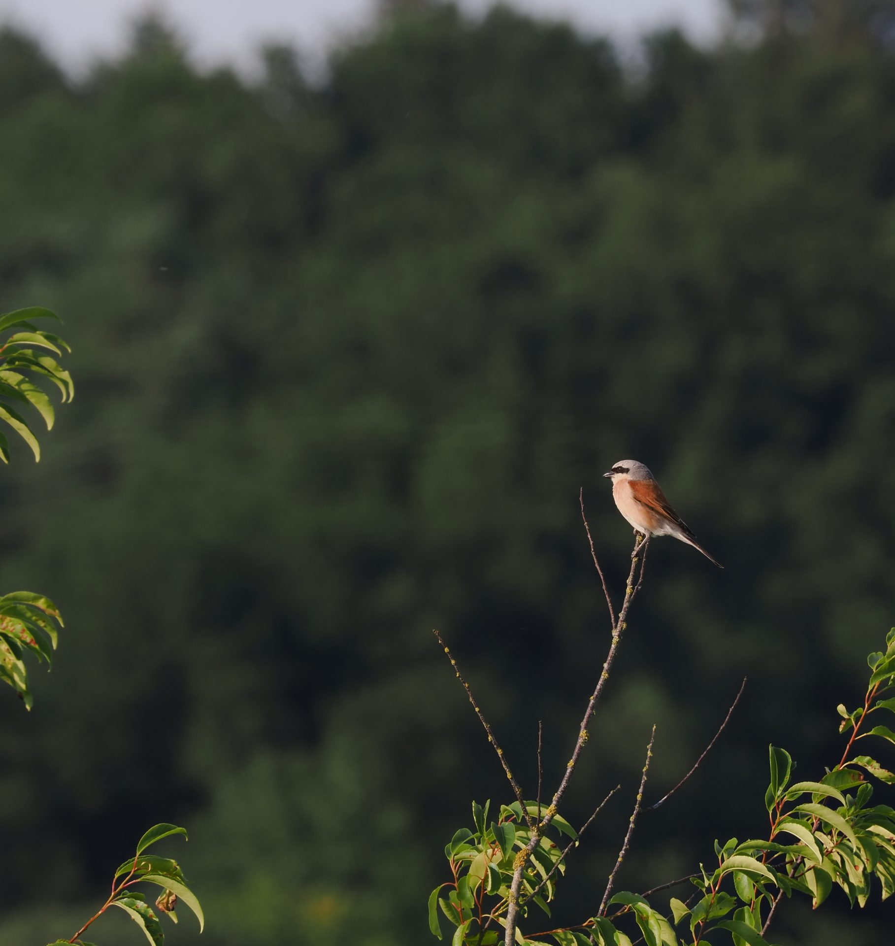 Hier das Männchen: Gestern Abend hielt er noch Ausschau nach Insekten oder Mäusen. Er spießt sie auf Dornen, als eine Art Vorratskammer.