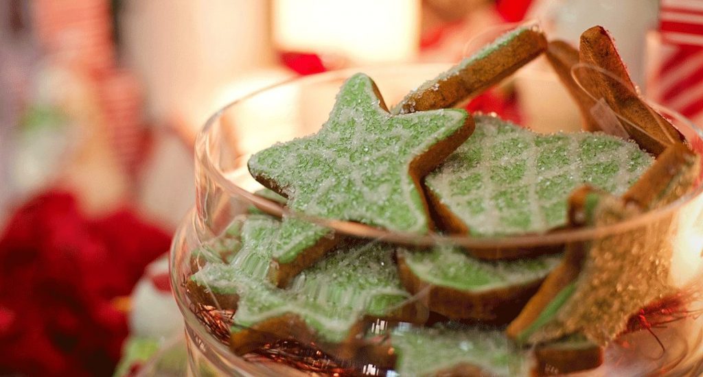 3) Welches Gebäck wird oft zu Weihnachten gebacken und hat die Form eines Sterns oder Herzens?